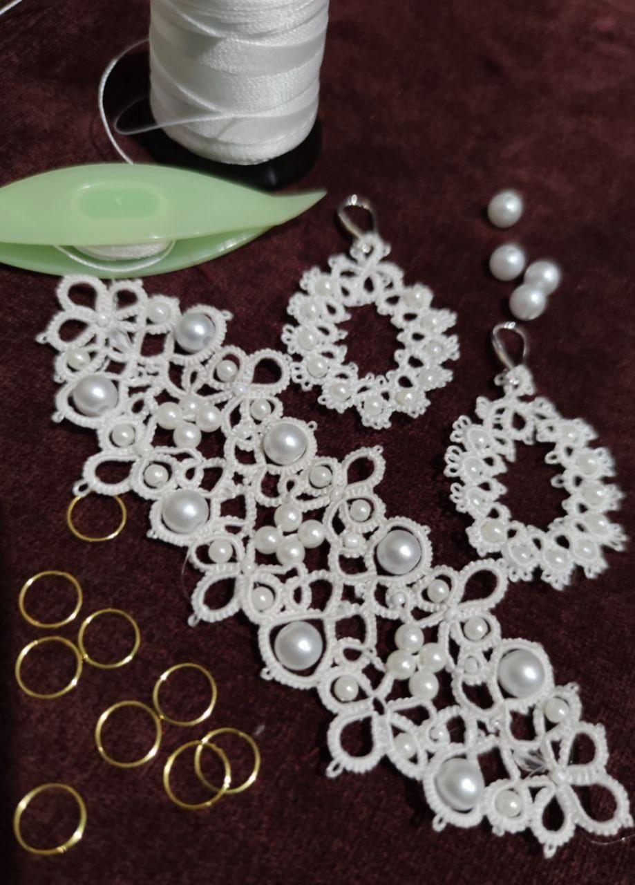 Этот белоснежный комплект— больше, чем просто украшение. Это воплощение нежности и любви.🕊️ Вплетенные в ажур жемчужины, словно слезы счастья, добавляют образу сияние.✨ Они будут так же нежно переливаться на свету, когда вы будете произносить свое заветное «да».🙌🏼